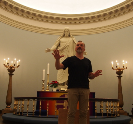 Billedet til ventre er fra arrangement i 2017 den 3. søndag i advent i Kristkirken i Kolding med De Ni Recitationer til Jul.